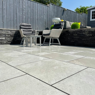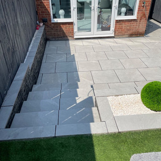 We really enjoyed having a brief for a total transformation of this space, which connects seamlessly with the home inside. It's a stylish and low maintenance extension of the client's living space split across two levels. We've created and clad retaining walls, added coping, laid porcelain tiles, created storage and finished off with artificial lawn and planting, and contemporary fencing.